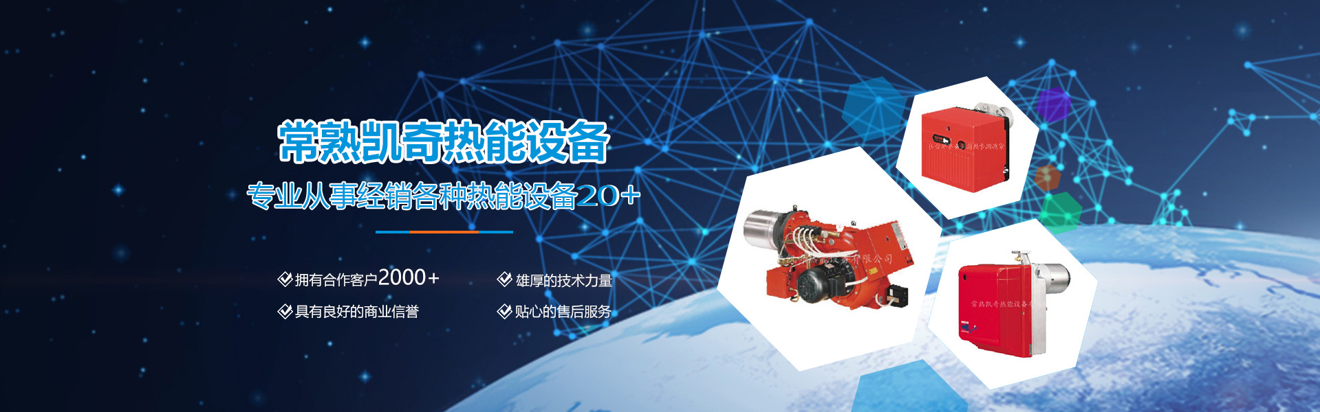 常熟凱奇熱能設備有限公司位于江蘇省常熟市新世紀大道與沙家浜路交界處,離蘇嘉杭高速只要五分鐘的路程,交通十分便利。我們有著從事經銷各種熱能設備十多年的經驗,現已服務過的行業有(鍋爐、涂裝、化工、無紡、鋁合金、學校、賓館、浴場、服裝、造紙、精密機械等),已有2000多家長期合作的用戶,具有良好的商業信譽,雄厚的技術力量和貼心的售后服務。